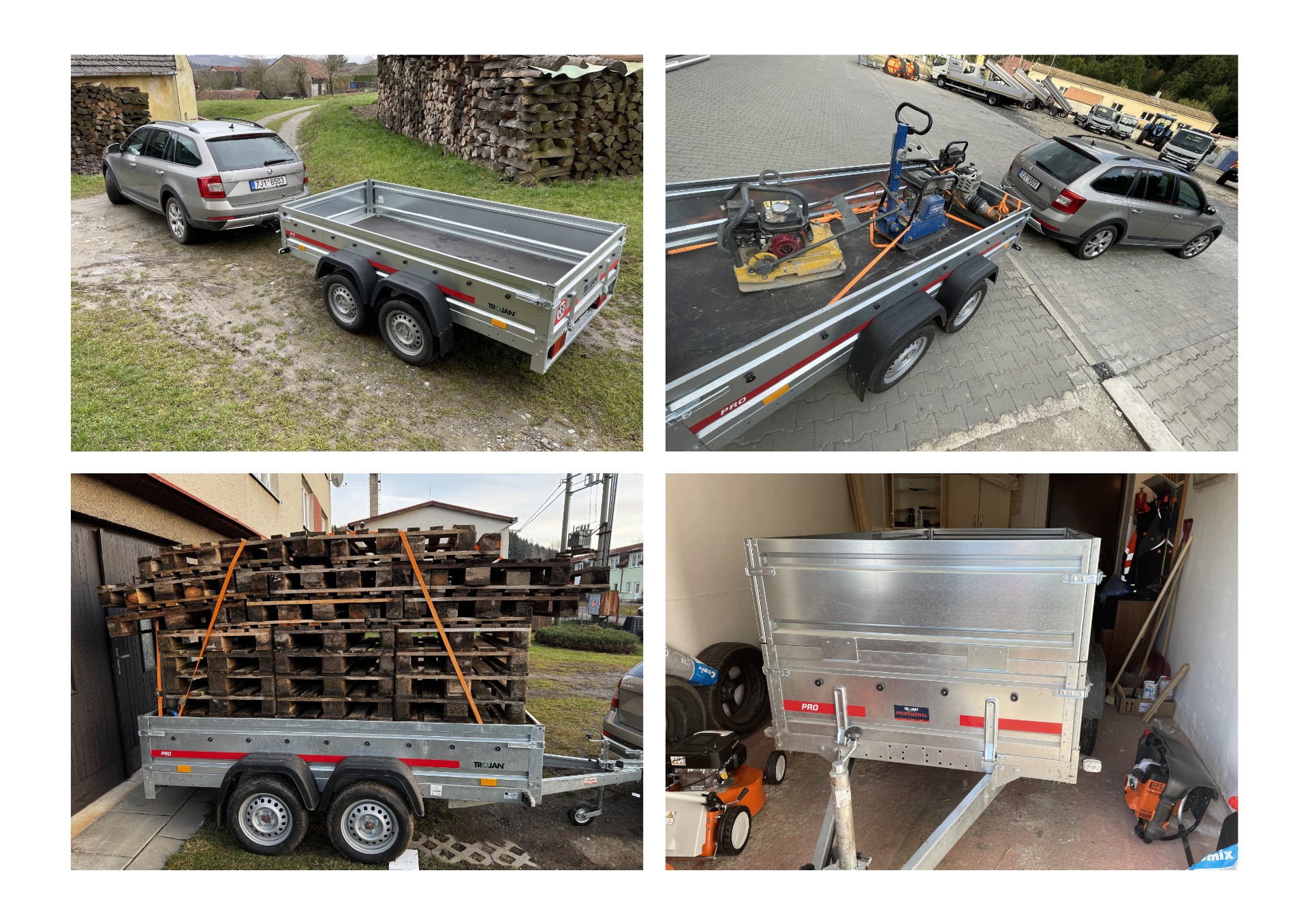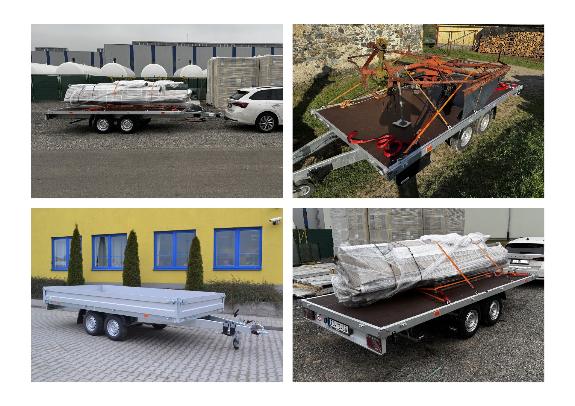 Dvouosý bržděný vozík do 2700 kg. Plato, případně 400 mm bočnice. Všechny bočnice a čela odnímatelná. ŘP sk. B + E